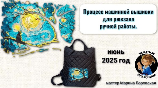 Процесс вышивки для рюкзака ручной работы от мастера Марины Боровской.