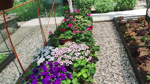 Обзор 3 летних площадок . Петунии колеусы фуксии пеларгонии. Где разместить много растений в летом.