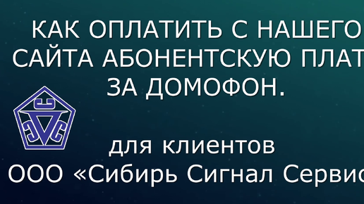 Как оплатить абонентскую плату за домофон через наш сайт (Инструкция для клиентов ООО «Сибирь Сигнал Сервис»)