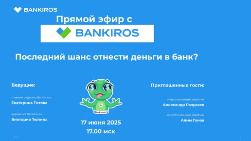 Последний шанс отнести деньги в банк? Прямой эфир Банкирос 17 июня 2025