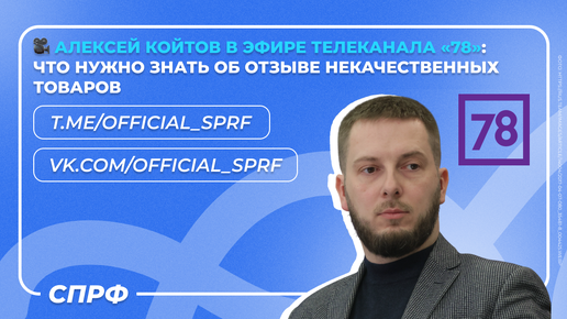 🎥 Алексей Койтов в эфире телеканала «78»: что нужно знать об отзыве некачественных товаров