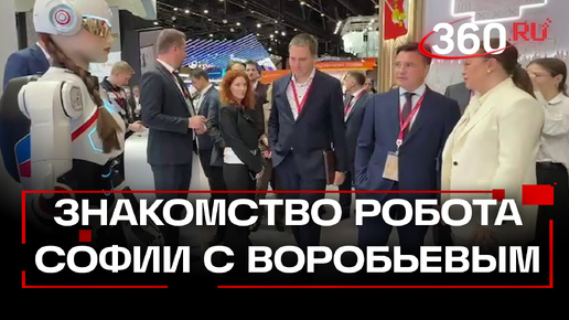 Робот София поприветствовала губернатора Андрея Воробьева на ПМЭФ