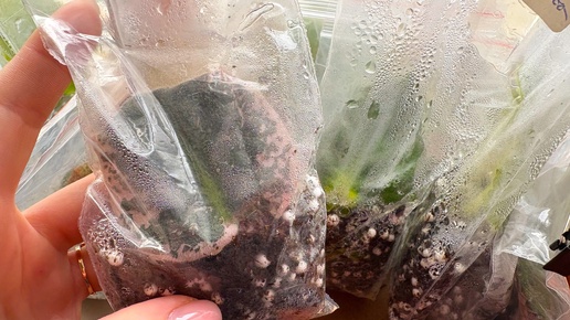 Результат посадки листиков фиалок в зип-пакеты • черенки фиалок дали корешки и деток