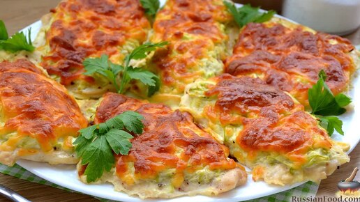 Курица под кабачковой "шубкой". Куриные отбивные с кабачками и сыром