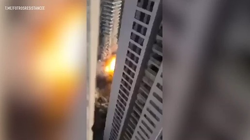 Прилет иранской ракеты рядом с небоскребом в Тель-Авиве