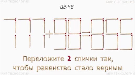 Задача со спичками 538. Переложите 2 спички так, чтобы равенство стало верным (777+98=855).