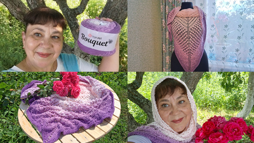 Простая треугольная косынка "Букет",спицами, из 100% мягкого хлопка готова! Уфа 19.06.25г.