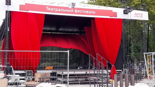 19.06.2025 Перед зданием Северного Речного вокзала готовится сцена для театрального фестиваля