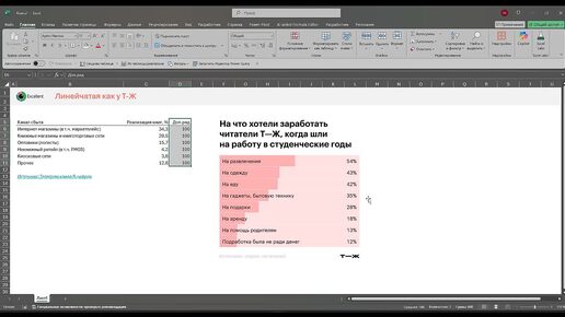 Как построить стильную линейчатую диаграмму как у Т-Ж