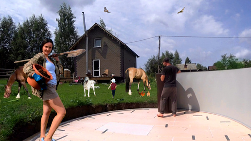 Жизнь в селе. Сделали большой бассейн. Заполнили водой. Как далеко школа и детсад от лесной деревни