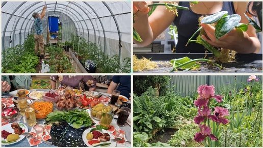 Жара спала. Высадила кабачки и тыквы. Порядок в теплице, а на ягоды напасть! Рассадила черенки сциндапсуса