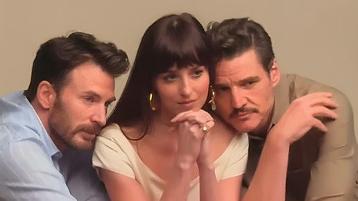Педро Паскаль, Дакота Джонсон и Крис Эванс — самое милое трио в кино прямо сейчас