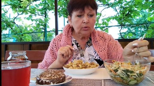 Мукбанг 😋👍. Макароны по флотски, салат, перец Чили, имбирная коврижка, компот.