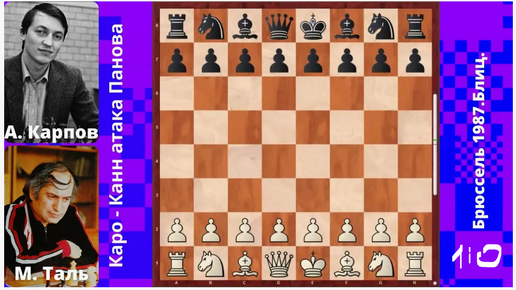 Михаил Таль (белые) безупречно ставит мат Анатолию Карпову - красиво и творчески блицует чемпиона мира в защите Каро-Канн (Брюссель, 1987)