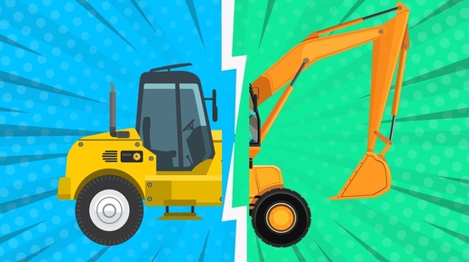Угадай Машинку по половинке - Погрузчик и Экскаватор - Строительные машинки. Мультики для детей