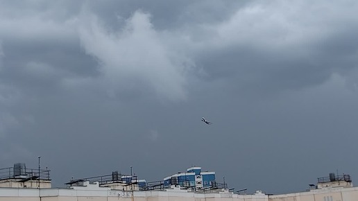 Огромный Боинг-777 резко поворачивает уходя от штрафа при взлете.