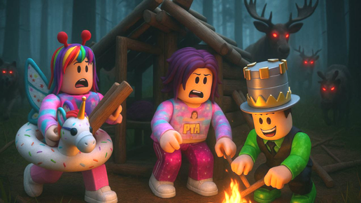 ЛОСЬ ХОЧЕТ НАС ПОЙМАТЬ в РОБЛОКС! 100 дней выживания в СТРАШНОМ ЛЕСУ! НО Папа и ДОЧКИ...