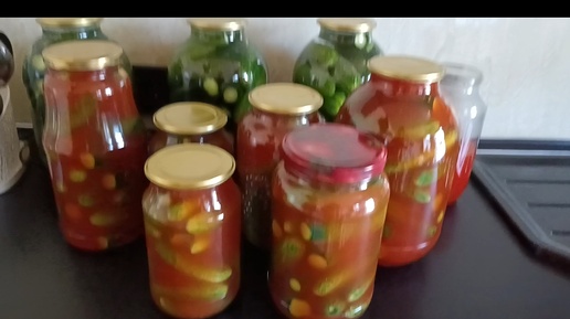 Огурчики, с кетчупом чили. И бочковые огурцы.