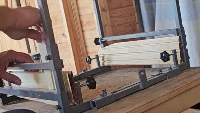 Сборка пчелиных рамок на кондукторе с пневмостеплером быстро и просто