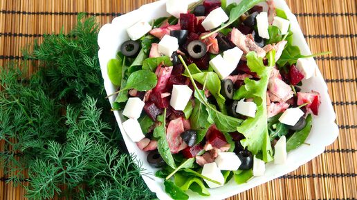 Салат со свёклой, курицей и сыром фета