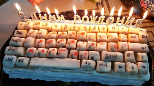В семейный архив. Торт для юного хакера делала любимая невестка. Очень переживала, что буковки на вкуснющей клавиатуре потекли по дороге))