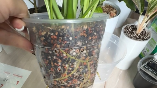Пересадка спатифиллума растущего на фитильном поливе