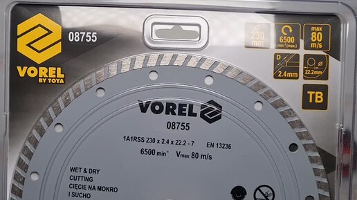 Отрезной алмазный диск TURBO 230 мм VOREL 08755