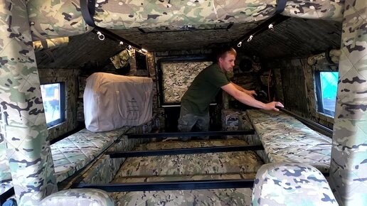 Обустройство спального места в гибридном вездеходе "БРо" с двумя рядами сидений