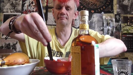 алкогольный мукбанг настойка горькая медовая усадьба салат с помидор чери картошка тущёная
