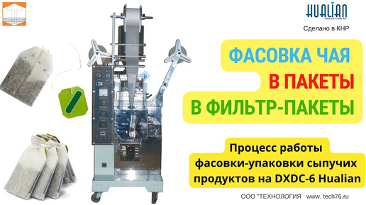 Работа аппарата для фасовки чая в пакеты DXDC-6 Hualian (пакет+нитка+ ярлык)
