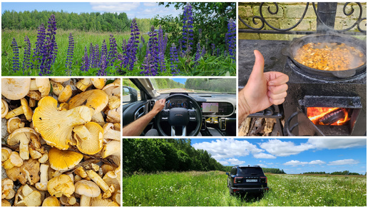 Грибной сезон 2025. Первые прогулки по лесу и поиски грибов. Ужин из лисичек на костре.