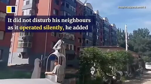 Пенсионер из Китая встроил в свою квартиру канатную дорогу, чтобы спускаться на улицу прямо с балкона