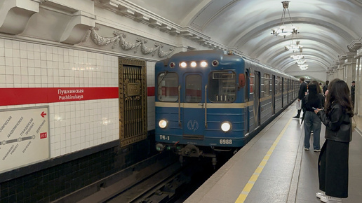 Метропоезд Ем-501/Ема-502 №111 на ст.м.Пушкинская, июнь 2025 года