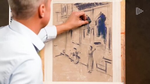 Городской пейзаж. Рисует пастелью художник Владислав Татаринов.