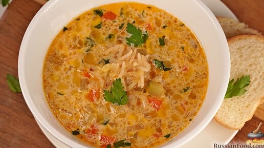 Лёгкое овощное блюдо. Суп с цукини, рисом и сливками
