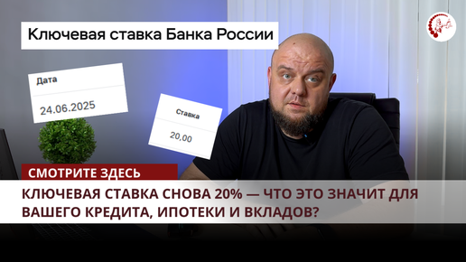 📉 Ключевая ставка снова 20% — что это значит для вашего кредита, ипотеки и вкладов?