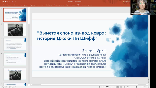 Эльвира Ариф, практик ТА "Выметая слона из-под ковра: история Джеки Ли Шифф"