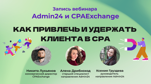 Запись вебинара Admin24 и CPAExchange «Как привлечь и удержать клиента в СРА»