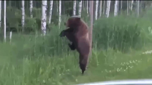 В Ленобласти сотрудники ДПС помогли медведю, выбежавшему на дорогу: видео