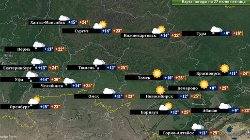 Прогноз погоды на 26-27 июня 2025 г.