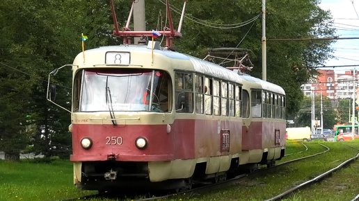 Трамвай Екатеринбурга Tatra T3SU СМЕ борт. №250/251 маршрут 8 следует по Проспекту Космонавтов