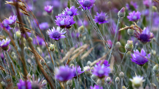 Лиловый бессмертник на летних холмах.