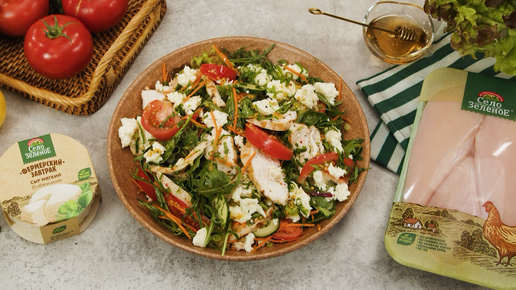 Салат с куриной грудкой, фермерским сыром и овощами от Село Зелёное