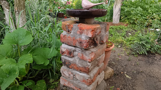 Поилка для птиц своими руками из старого кирпича, советского изолятора и фигурки из Фикс Прайс👌