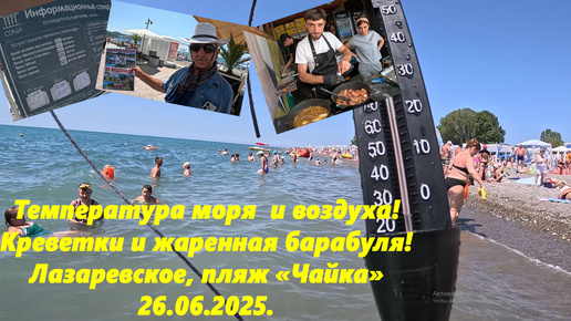 Температура моря и воздуха! Цены в столовых! Жаренная барабуля и креветки! Лазаревское 26.06.2025. Пляж "Чайка" ЛАЗАРЕВСКОЕ СЕГОДНЯ.