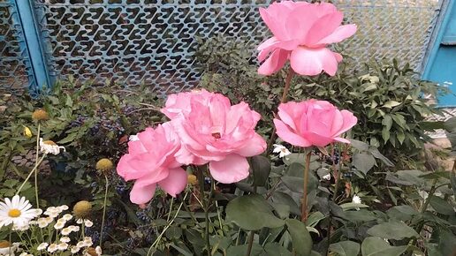 Розы, лилейник, лилии.