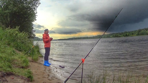 Река Волга. Рыбалка на донки в грозу. Эта оснастка ловит в любую погоду.