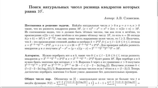 Поиск натуральных чисел разница квадратов которых равна 10^l.