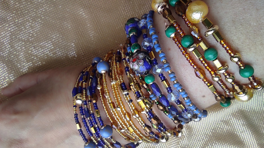 5 браслетов на каждый день. Ручная работа. Позолота, натуральные камни, бисер, ювелирное стекло.