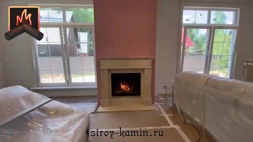 Недорогой камин портального типа из мрамора с российской дровяной топкой АСТОВ ПС 7363 в гостиной коттеджа КП Зеленая Роща 1